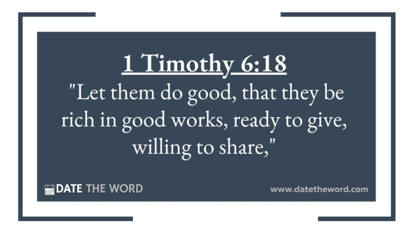 1 Timothy 6:18 "Let them do good, that they be rich in good works, ready to give, willing to share,"