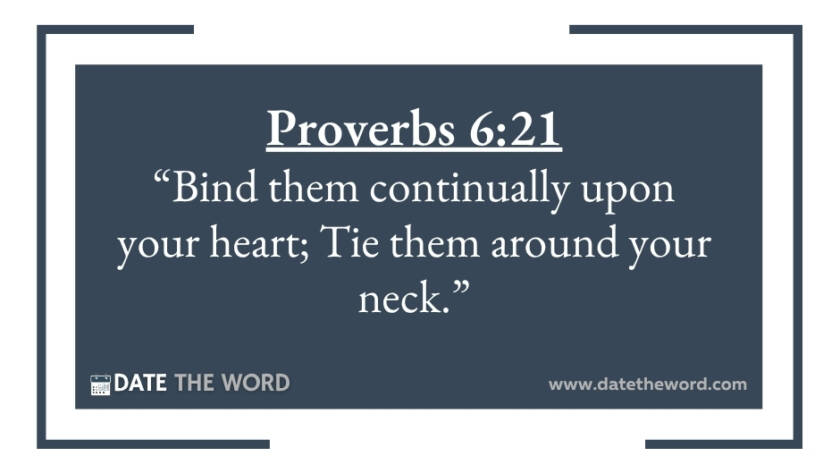 Proverbs 6:21 “Bind them continually upon your heart; Tie them around your neck.”