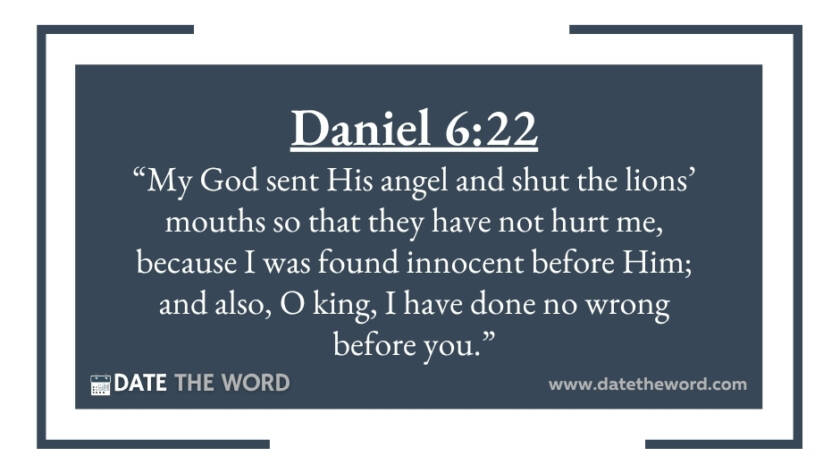 Daniel 6:22 “My God sent His angel and shut the lions’ mouths so that they have not hurt me, because I was found innocent before Him; and also, O king,…