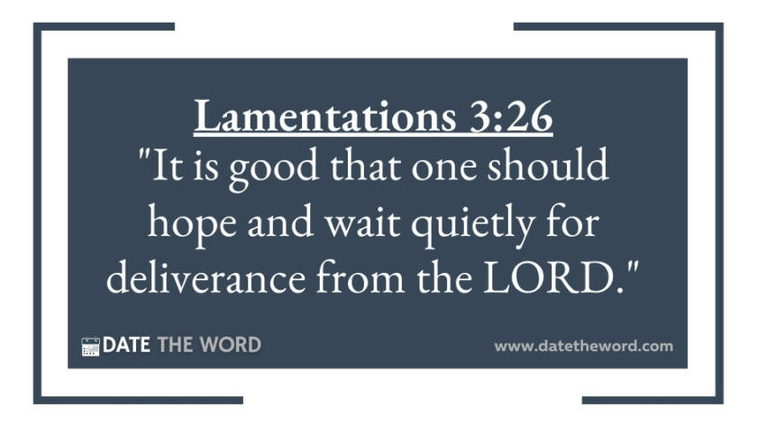 Lamentations 3:26 "It is good that one should hope and wait quietly for deliverance from the LORD."