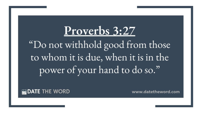 Proverbs 3:27 “Do not withhold good from those to whom it is due, when it is in the power of your hand to do so.”