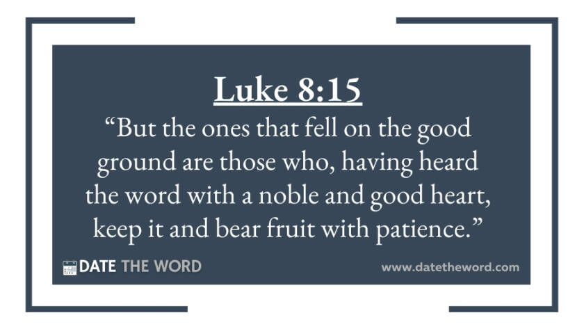 Luke 8:15 “But the ones that fell on the good ground are those who, having heard the word with a noble and good heart, keep it and bear fruit with…