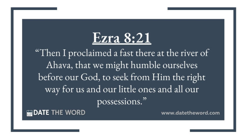 Ezra 8:21 “Then I proclaimed a fast there at the river of Ahava, that we might humble ourselves before our God, to seek from Him the right way for us…