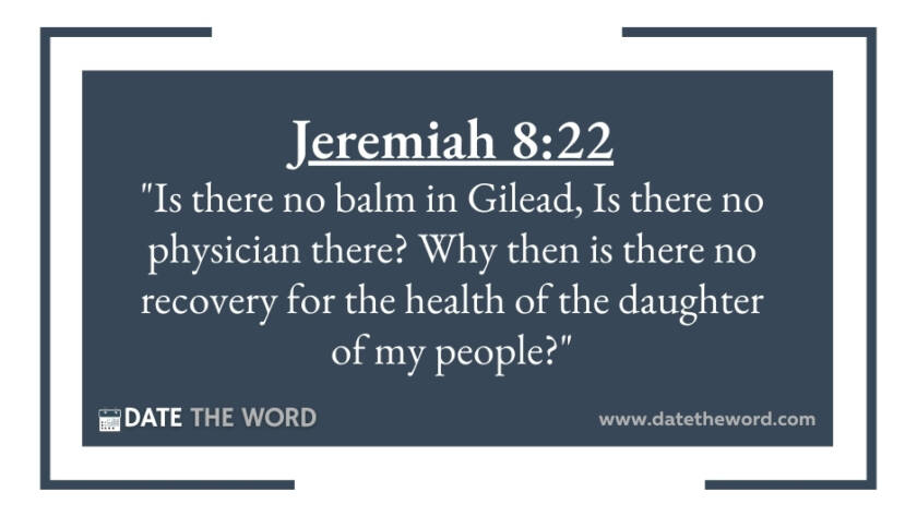 Jeremiah 8:22 "Is there no balm in Gilead, Is there no physician there? Why then is there no recovery for the health of the daughter of my people?"