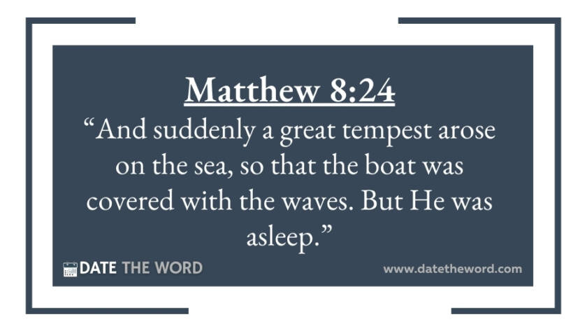 Matthew 8:24 “And suddenly a great tempest arose on the sea, so that the boat was covered with the waves. But He was asleep.”