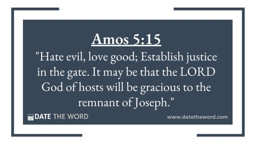 Amos 5:15 "Hate evil, love good; Establish justice in the gate. It may be that the LORD God of hosts will be gracious to the remnant of Joseph."
