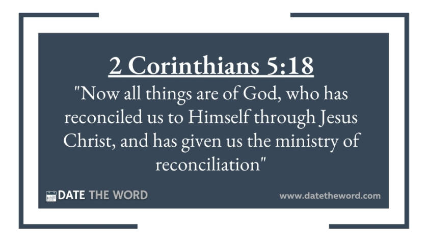 2 Corinthians 5:18 "Now all things are of God, who has reconciled us to Himself through Jesus Christ, and has given us the ministry of reconciliation"