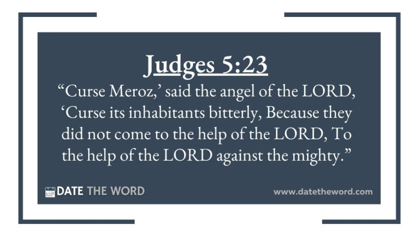 Judges 5:23 "'Curse Meroz,' said the angel of the LORD, 'Curse its inhabitants bitterly, Because they did not come to the help of the LORD, To the help of the…