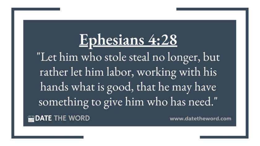 Ephesians 4:28 "Let him who stole steal no longer, but rather let him labor, working with his hands what is good, that he may have something to give him who…