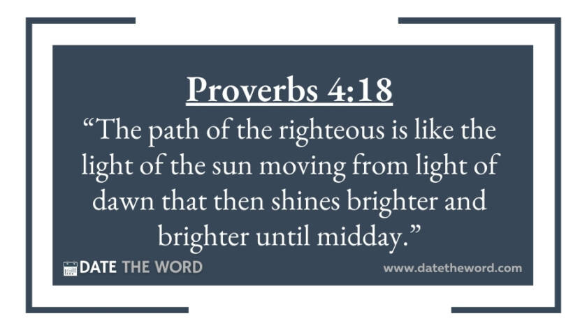 Proverbs 4:18 “The path of the righteous is like the light of the sun moving from light of dawn that then shines brighter and brighter until midday.”
