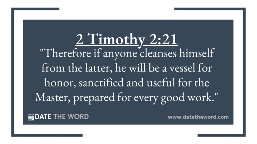 2 Timothy 2:21 "Therefore if anyone cleanses himself from the latter, he will be a vessel for honor, sanctified and useful for the Master, prepared for every good work."