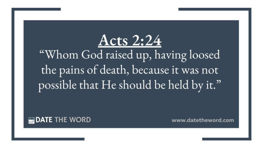 Acts 2:24 “Whom God raised up, having loosed the pains of death, because it was not possible that He should be held by it.”