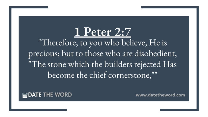 1 Peter 2:7 "Therefore, to you who believe, He is precious; but to those who are disobedient, "The stone which the builders rejected Has become the chief cornerstone,""