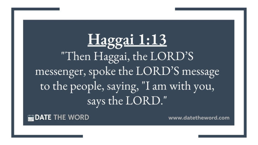 Haggai 1:13 "Then Haggai, the LORD’S messenger, spoke the LORD’S message to the people, saying, "I am with you, says the LORD."