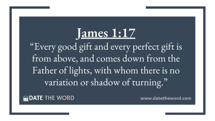 James 1:17 “Every good gift and every perfect gift is from above, and comes down from the Father of lights, with whom there is no variation or shadow of turning.”…