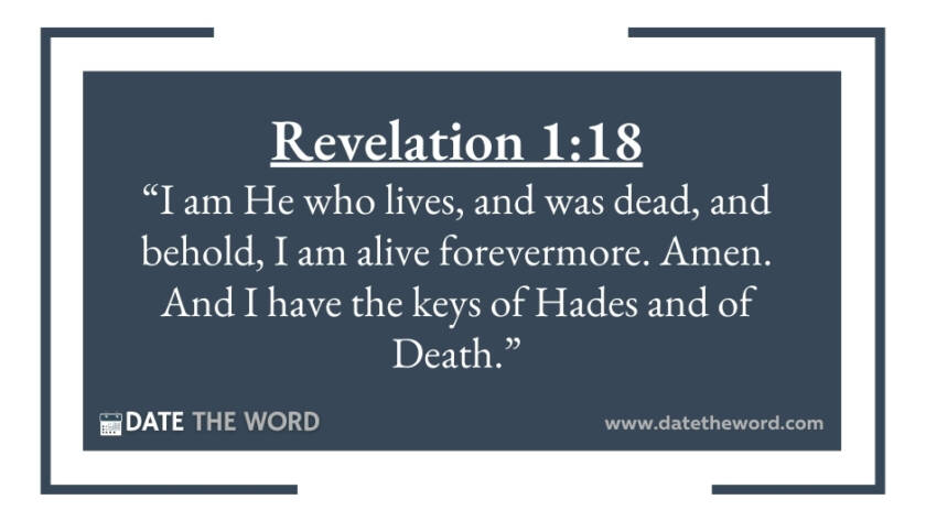 Revelation 1:18 “I am He who lives, and was dead, and behold, I am alive forevermore. Amen. And I have the keys of Hades and of Death.”