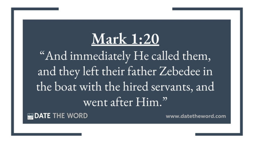 Mark 1:20 “And immediately He called them, and they left their father Zebedee in the boat with the hired servants, and went after Him.”