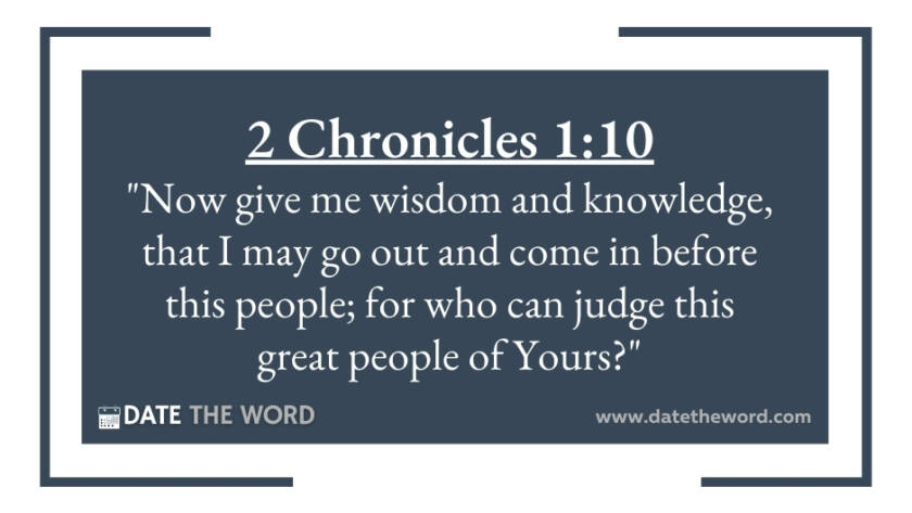 2 Chronicles 1:10 "Now give me wisdom and knowledge, that I may go out and come in before this people; for who can judge this great people of Yours?"