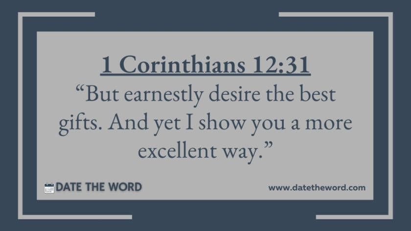 1 Corinthians 12:31 “But earnestly desire the best gifts. And yet I show you a more excellent way.”