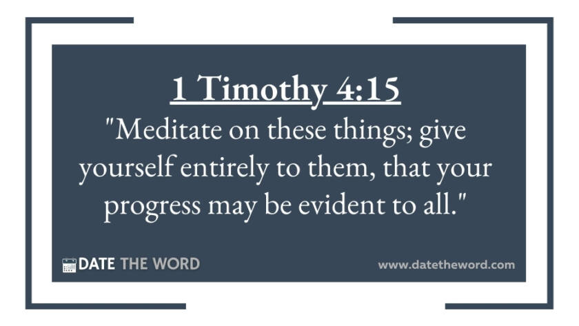 1 Timothy 4:15 "Meditate on these things; give yourself entirely to them, that your progress may be evident to all."