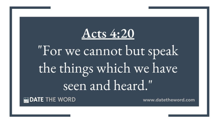 Acts 4:20 "For we cannot but speak the things which we have seen and heard."