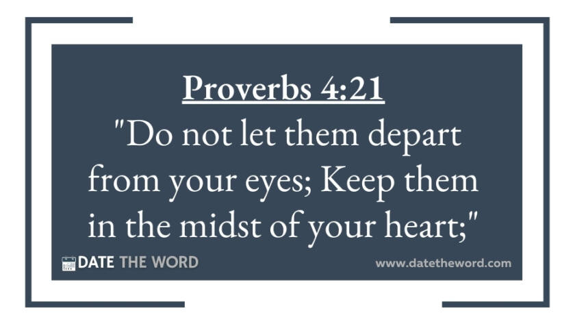 Proverbs 4:21 "Do not let them depart from your eyes; Keep them in the midst of your heart;"