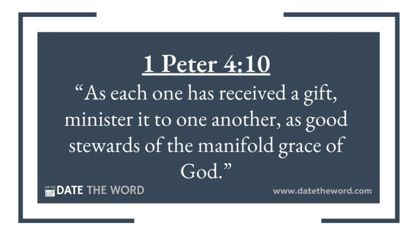 1 Peter 4:10 “As each one has received a gift, minister it to one another, as good stewards of the manifold grace of God.”