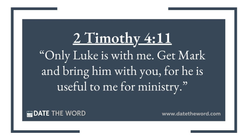 2 Timothy 4:11 “Only Luke is with me. Get Mark and bring him with you, for he is useful to me for ministry.”