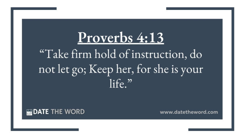 Proverbs 4:13 “Take firm hold of instruction, do not let go; Keep her, for she is your life.”