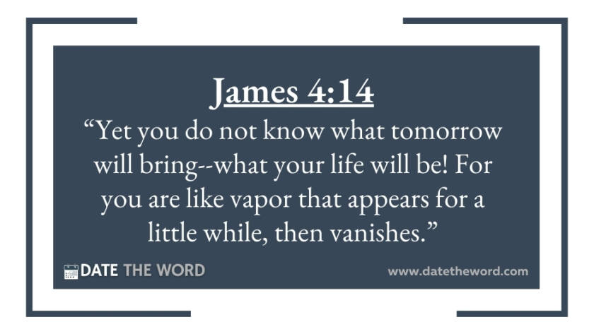 James 4:14 “Yet you do not know what tomorrow will bring--what your life will be! For you are like vapor that appears for a little while, then vanishes.”