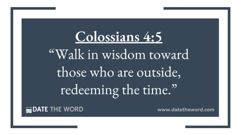 Colossians 4:5 “Walk in wisdom toward those who are outside, redeeming the time.”