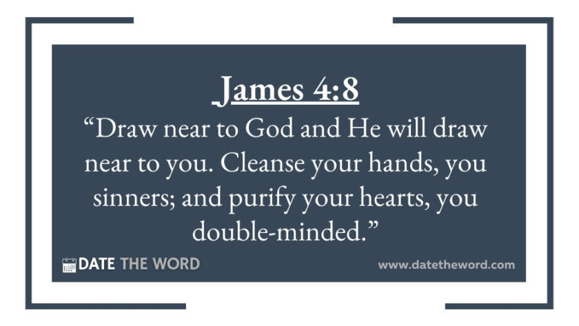 James 4:8 “Draw near to God and He will draw near to you. Cleanse your hands, you sinners; and purify your hearts, you double-minded.”