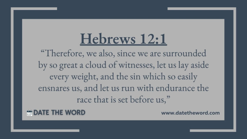 Hebrews 12:1 “Therefore, we also, since we are surrounded by so great a cloud of witnesses, let us lay aside every weight, and the sin which so easily ensnares us,…