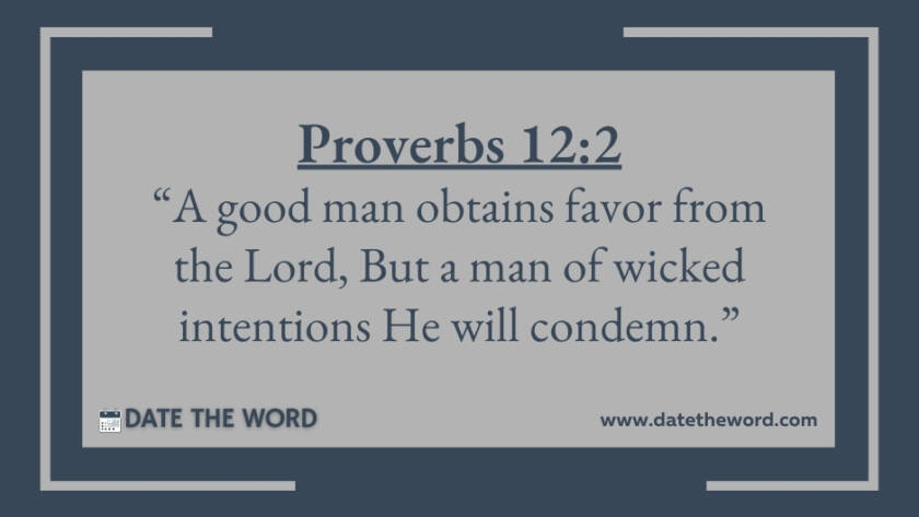 Proverbs 12:2 “A good man obtains favor from the Lord, But a man of wicked intentions He will condemn.”