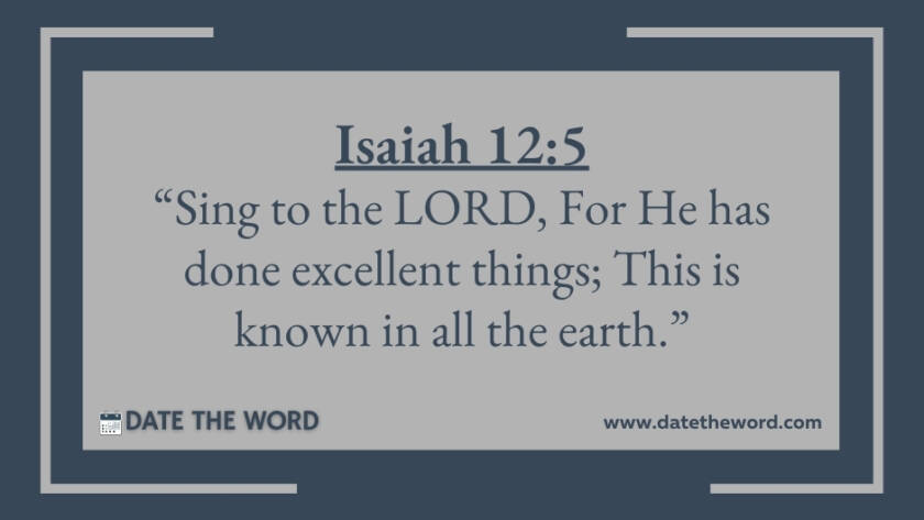 Isaiah 12:5 “Sing to the LORD, For He has done excellent things; This is known in all the earth.”
