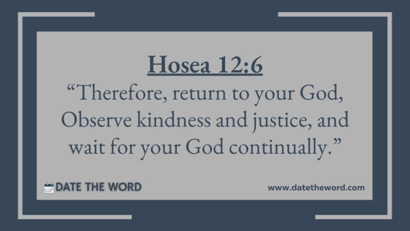 Hosea 12:6 “Therefore, return to your God, Observe kindness and justice, and wait for your God continually.”