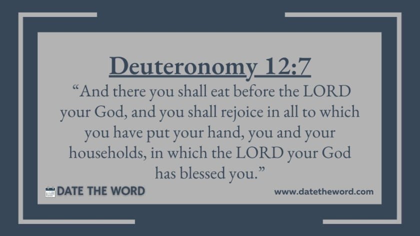 Deuteronomy 12:7 “And there you shall eat before the LORD your God, and you shall rejoice in all to which you have put your hand, you and your households, in…