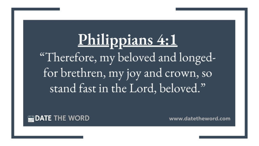 Philippians 4:1 “Therefore, my beloved and longed-for brethren, my joy and crown, so stand fast in the Lord, beloved.”