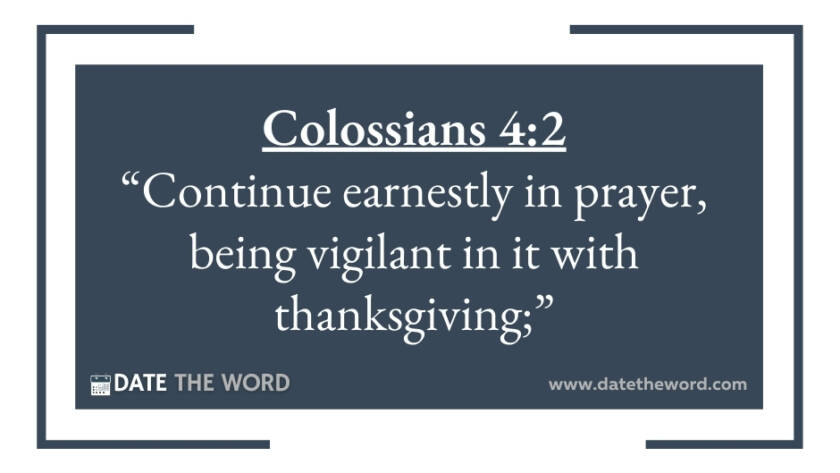 Colossians 4:2 “Continue earnestly in prayer, being vigilant in it with thanksgiving;”