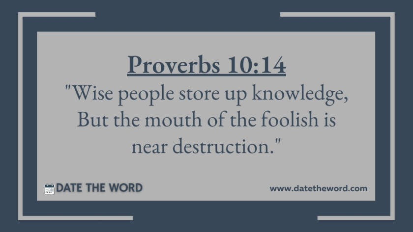 Proverbs 10:14 "Wise people store up knowledge, But the mouth of the foolish is near destruction."