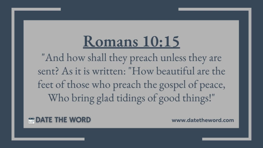 Romans 10:15 "And how shall they preach unless they are sent? As it is written: "How beautiful are the feet of those who preach the gospel of peace, Who bring…