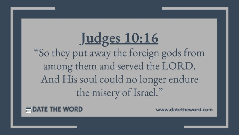 Judges 10:16 “So they put away the foreign gods from among them and served the LORD. And His soul could no longer endure the misery of Israel.”