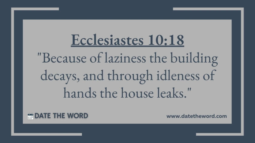 Ecclesiastes 10:18 "Because of laziness the building decays, and through idleness of hands the house leaks."