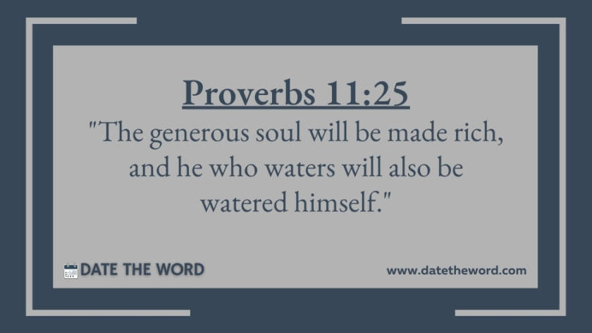 Proverbs 11:25 "The generous soul will be made rich, and he who waters will also be watered himself."