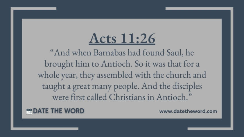 Acts 11:26 “And when Barnabas had found Saul, he brought him to Antioch. So it was that for a whole year, they assembled with the church and taught a great…