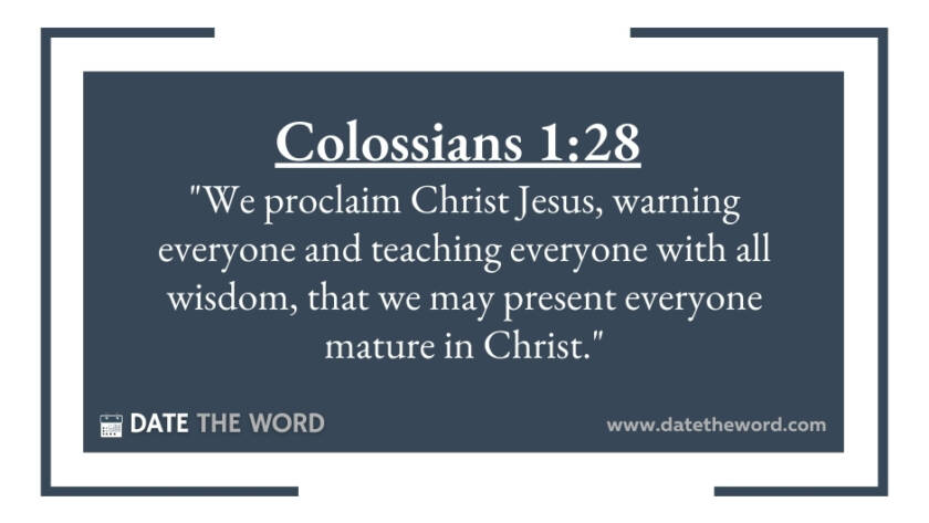 Colossians 1:28 "We proclaim Christ Jesus, warning everyone and teaching everyone with all wisdom, that we may present everyone mature in Christ."