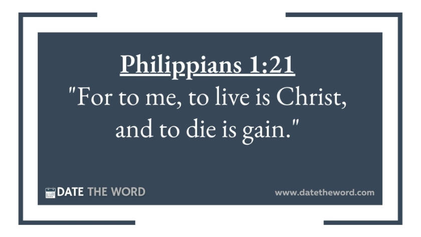Philippians 1:21 "For to me, to live is Christ, and to die is gain."