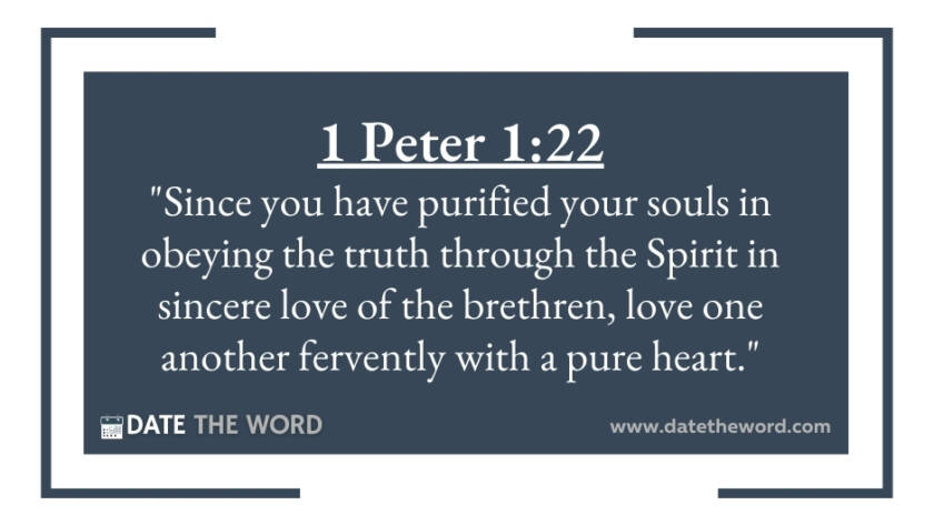 1 Peter 1:22 "Since you have purified your souls in obeying the truth through the Spirit in sincere love of the brethren, love one another fervently with a pure heart."…
