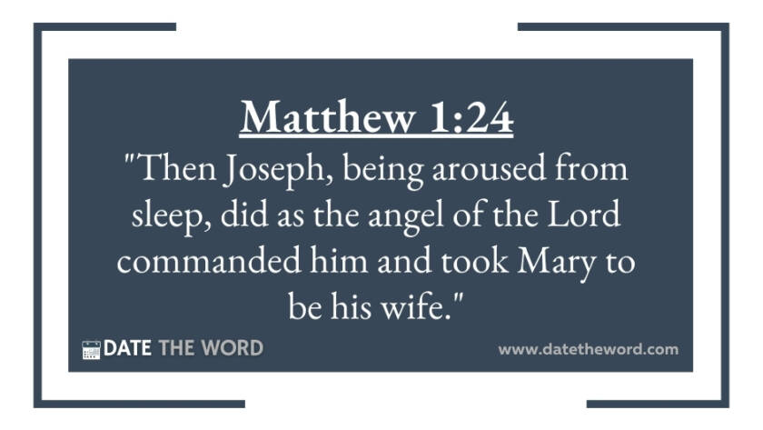 Matthew 1:24 "Then Joseph, being aroused from sleep, did as the angel of the Lord commanded him and took Mary to be his wife."