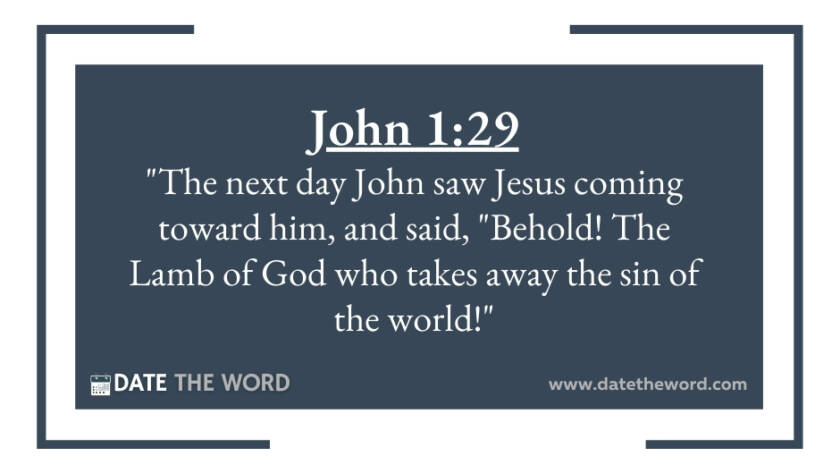 John 1:29 "The next day John saw Jesus coming toward him, and said, "Behold! The Lamb of God who takes away the sin of the world!"